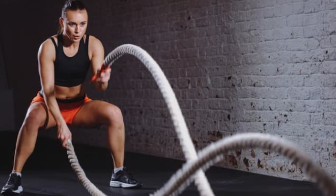 Ini adalah tali yang sangat panjang, dan Anda mungkin tidak tahu kegunaannya, tetapi tali ini sangat efisien dalam membakar lemak. Tali perang biasanya dirancang untuk latihan interval, dan 5 menit dapat membakar lebih dari 50 kalori, menjadikannya latihan pembakaran lemak yang sangat efisien. Trendi dan efektif, Anda layak mencobanya!